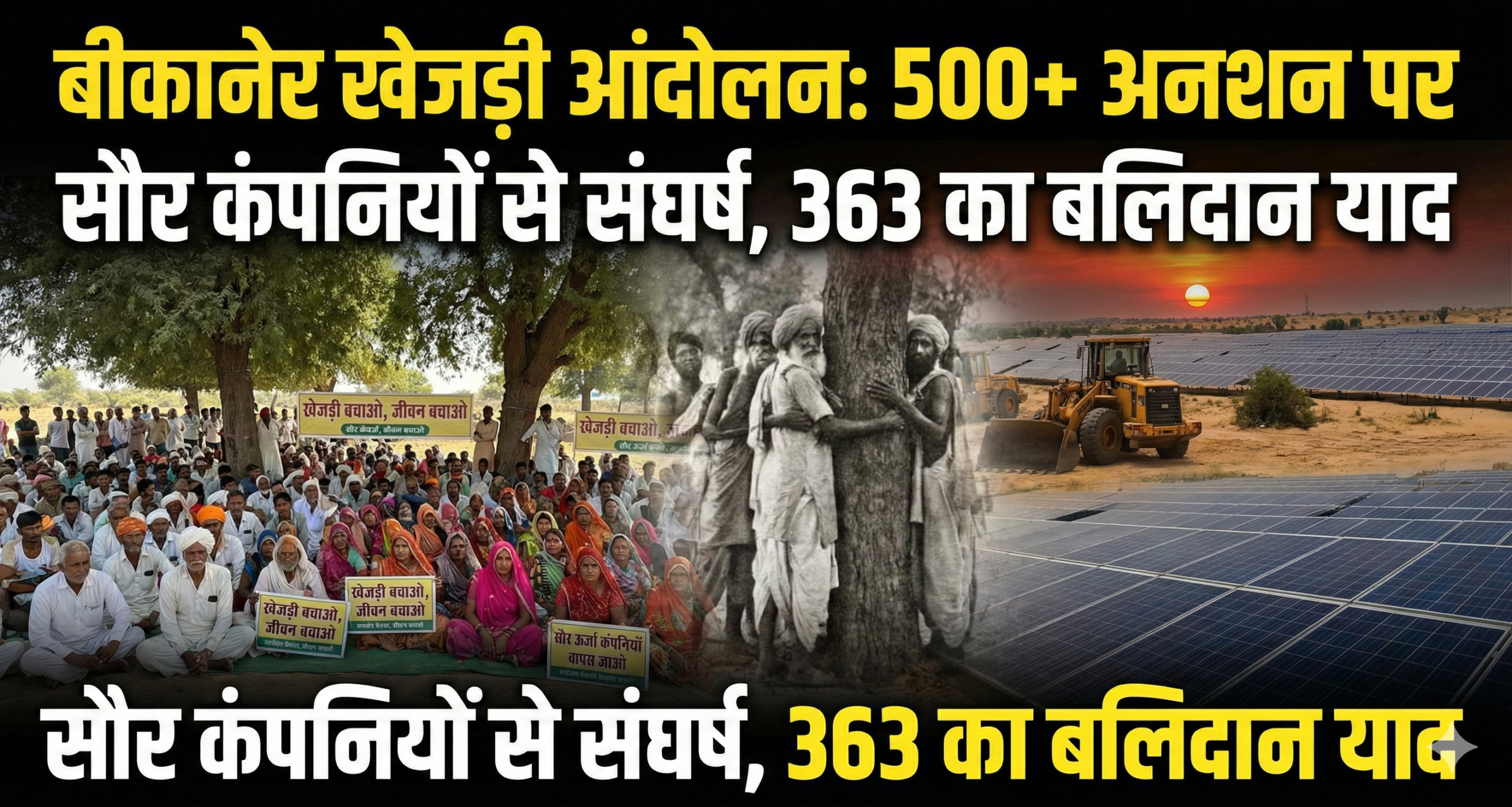 बीकानेर खेजड़ी बचाओ आंदोलन वर्तमान में राजस्थान के सबसे बड़े जन-आंदोलनों में से एक बन गया है। फरवरी 2026 की शुरुआत में, बीकानेर कलेक्ट्रेट के बाहर एक अभूतपूर्व दृश्य देखा गया जहाँ पर्यावरण संरक्षण की मांग को लेकर ‘आर-पार’ की लड़ाई शुरू हो गई है । इस आंदोलन का मुख्य उद्देश्य राजस्थान के राज्य वृक्ष खेजड़ी को सौर ऊर्जा परियोजनाओं के नाम पर होने वाली अंधाधुंध कटाई से बचाना है।