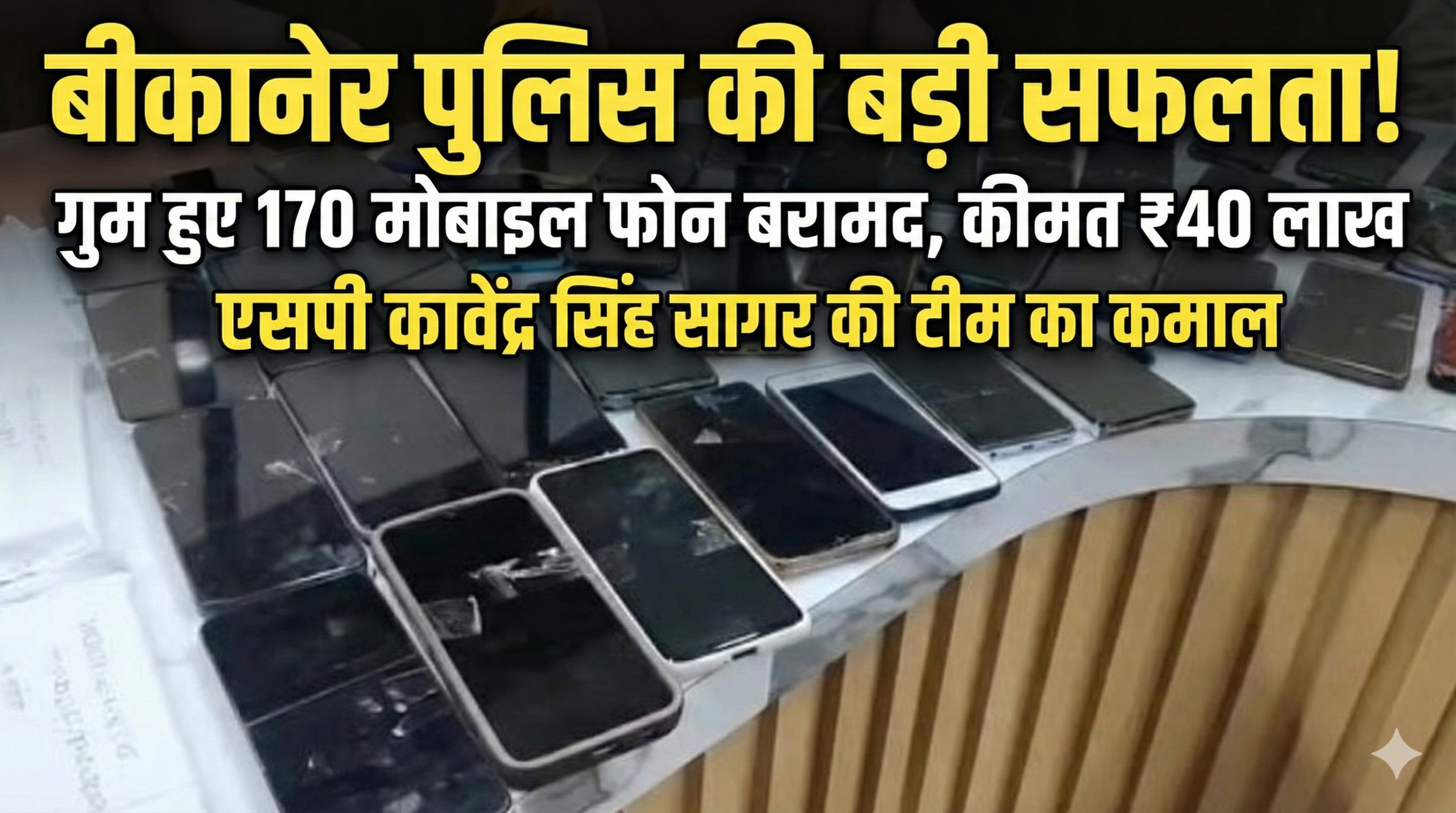 बीकानेर | मोबाइल फोन आज के दौर में सिर्फ एक डिवाइस नहीं, बल्कि लोगों की जिंदगी का अहम हिस्सा है। जब यह खोता है, तो डेटा और निजी जानकारी जाने का डर सबसे बड़ा होता है। इसी डर को दूर करते हुए बीकानेर पुलिस ने एक बड़ी सफलता हासिल की है। पुलिस अधीक्षक (SP) कावेंद्र सिंह सागर के नेतृत्व में पुलिस ने 170 गुम हुए मोबाइल फोन बरामद किए हैं।