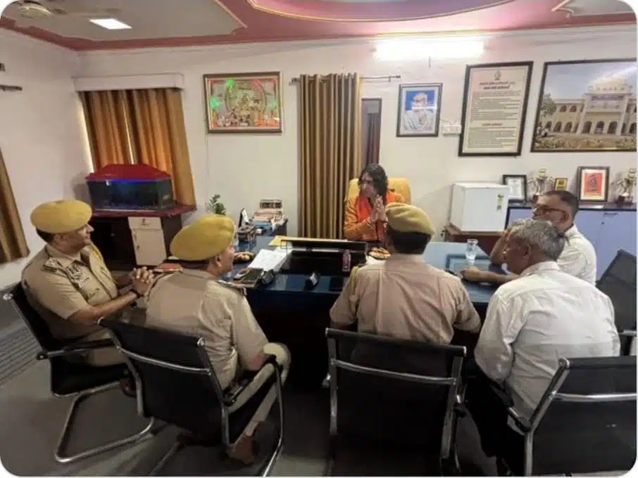 क्या हुआ?: सोमवार को बालमुकुंद आचार्य कांवड़ यात्रियों की सुरक्षा व्यवस्था को लेकर रामगंज थाने पहुंचे। इस दौरान वे थानेदार की कुर्सी पर बैठ गए, और सामने बैठे पुलिसकर्मियों के साथ उनकी चर्चा की तस्वीरें सामने आईं। यह दृश्य कई लोगों को अनुचित लगा, क्योंकि यह पुलिस प्रशासन की स्वतंत्रता पर सवाल उठाता है।