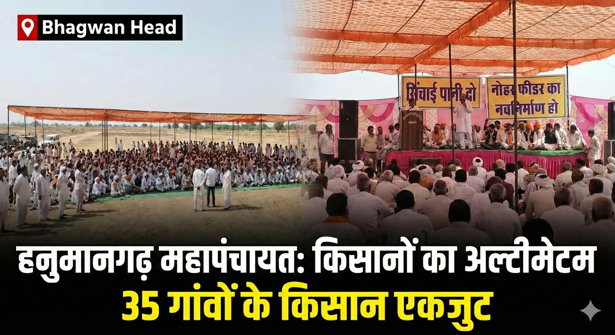 हनुमानगढ़ | राजस्थान का ‘धान का कटोरा’ कहे जाने वाले हनुमानगढ़ में आज (शुक्रवार) एक बार फिर किसान आंदोलन का बिगुल बज चुका है। सिंचाई पानी की किल्लत और नहरों की खस्ताहाल स्थिति से आक्रोशित हजारों किसान आज ‘भगवान हेड’ (Bhagwan Head) पर महापंचायत कर रहे हैं। इस महापंचायत में नोहर फीडर क्षेत्र के करीब 35 गांवों के किसानों का हुजूम उमड़ रहा है।