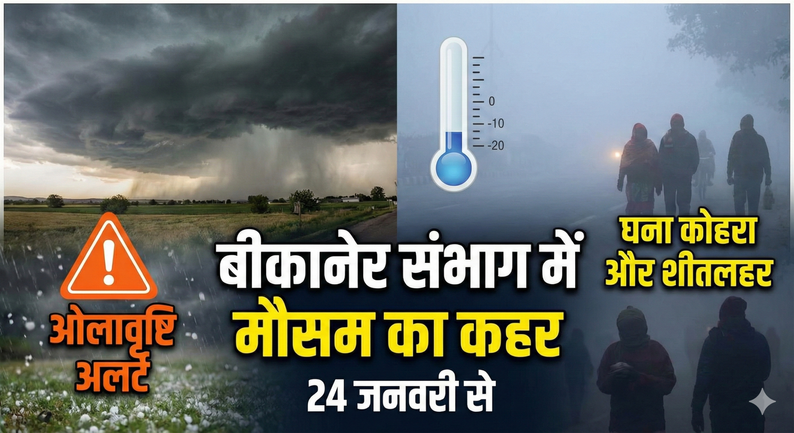 बीकानेर संभाग में ‘मावठ’ का डबल अटैक: गंगानगर-हनुमानगढ़ में ओलावृष्टि का अलर्ट, अब कोहरे और शीतलहर की बारी