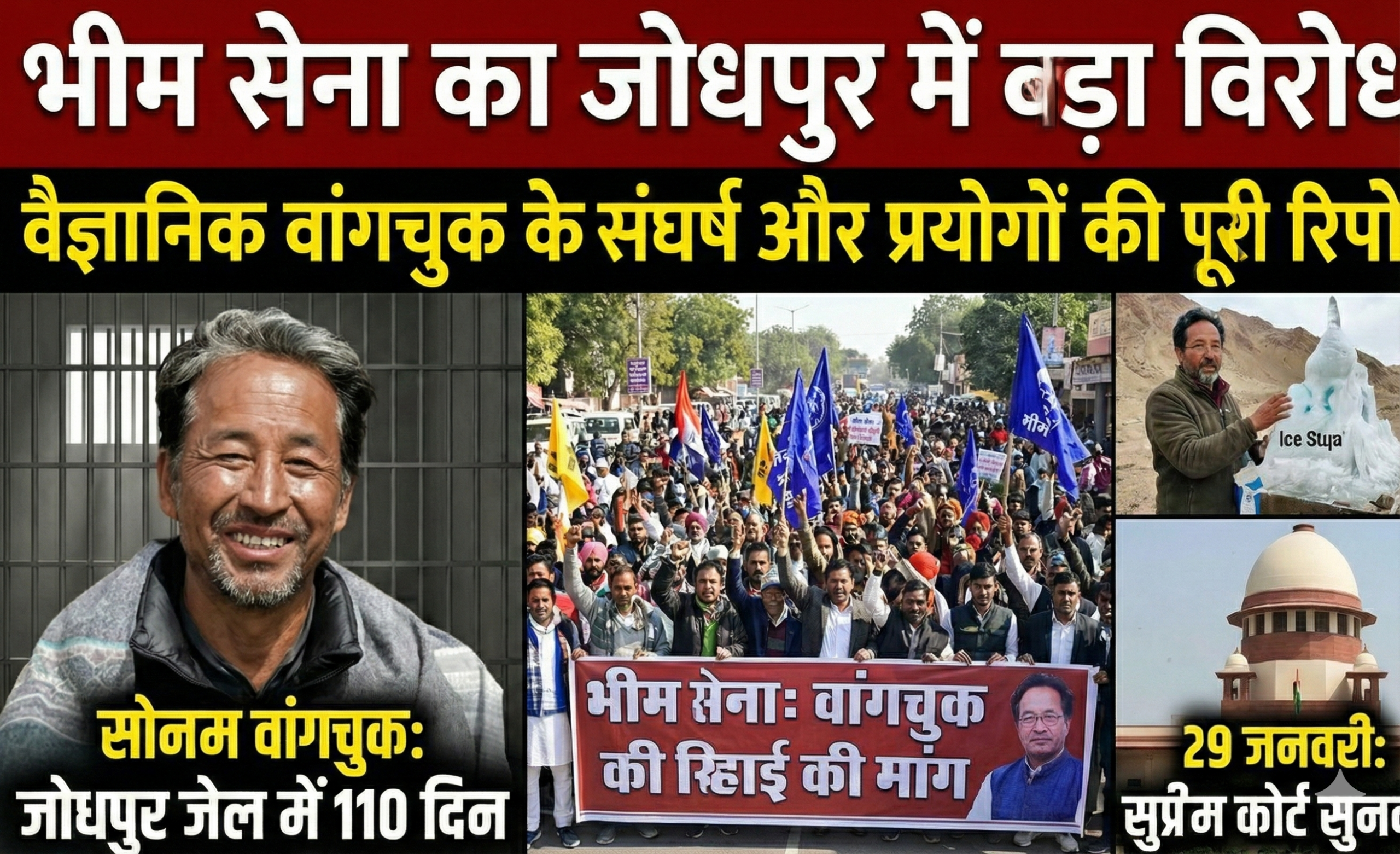 सोनम वांगचुक जोधपुर जेल में पिछले 110 दिनों से अधिक समय से राष्ट्रीय सुरक्षा कानून (NSA) के तहत नजरबंद हैं और आज उनकी रिहाई की मांग ने एक बार फिर जोर पकड़ लिया है। राजस्थान की सूर्य नगरी जोधपुर में आज सुबह से ही गहमागहमी का माहौल रहा, जब ‘भारतीय भीम सेना’ के सैकड़ों कार्यकर्ता लद्दाख के इस चर्चित जलवायु कार्यकर्ता के समर्थन में सड़कों पर उतर आए।